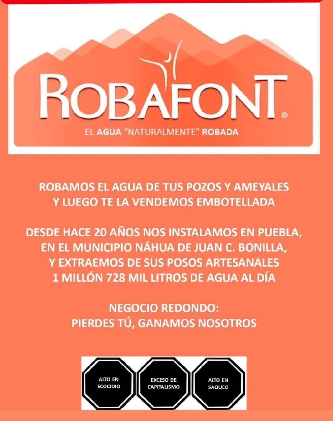 Esta empresa criminal robó millones de litros de agua diariamente en nuestra región, secando nuestros pozos, ríos y ameyales.